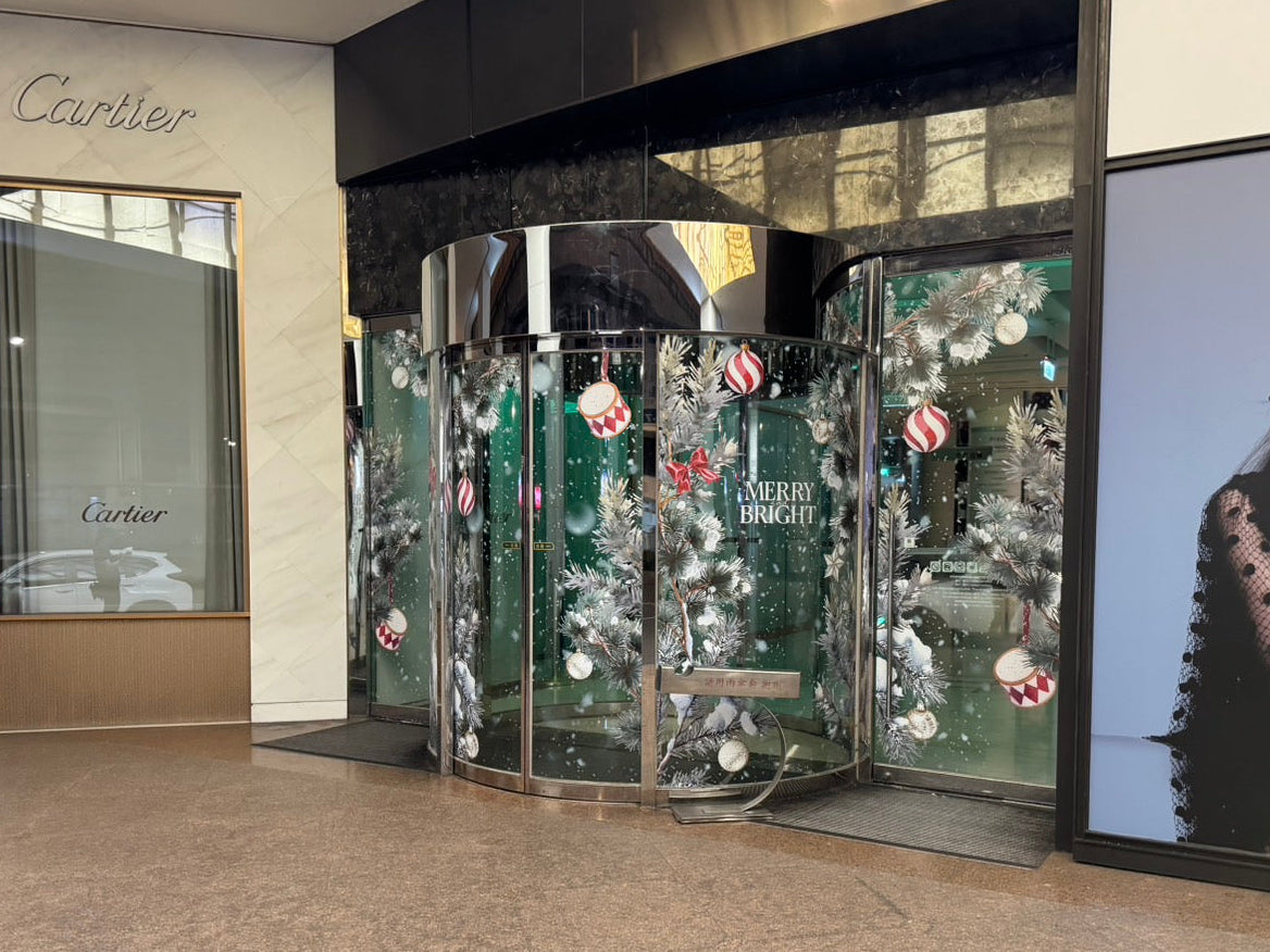 畫面自然浮現於透明與光線之間。兼具視覺展示與空間功能性,美感與實用平衡。品牌形象從踏入前就開始展演。